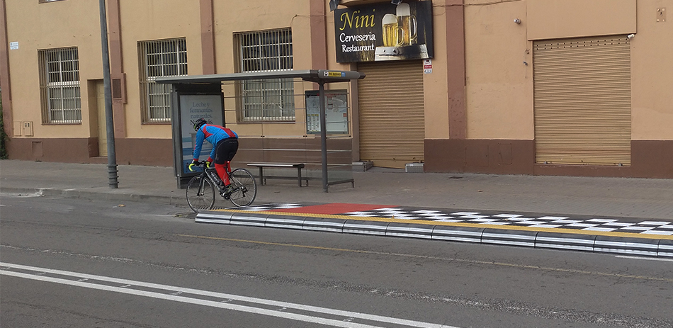ZICLA sistema Vectorial Badalona i Montgat connectades per un nou carril bici. 3Aquestes plataformes permeten que tant ciclistes com usuaris de l’autobús puguin compartir el mateix espai de manera segura. D’aquesta manera, els autobusos poden ara detenir-se en la parada sense necessitat de realitzar maniobres optimitzant els seus temps de recorregut i permetent l’accés senzill dels passatgers comuns i especialment d’aquells que tenen mobilitat reduïda.