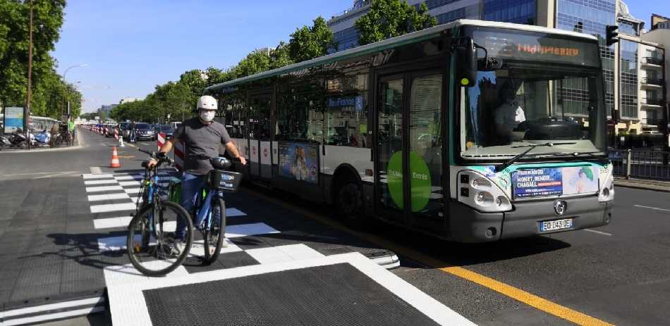 En el context del desconfinamiento, es recomana no utilitzar l’automòbil privat per als viatges diaris i afavorir l’ús del transport públic. No obstant això, aquest últim no podrà absorbir els fluxos addicionals de viatgers i garantir al mateix temps els estàndards de distanciament necessaris per a bregar amb la Covid-19. Amb la finalitat de donar més espai a la bicicleta que facilita el distanciament social sense generar contaminació, ara es reserva un carril en la direcció Port Mallot – La Défense per als ciclistes. La pista unidireccional, que també discorre pel Pont de Neuilly, passa per la superfície per sobre de la línia RER A, i forma part del projecte RER Vélo, liderat pel Collectif Vélo Île-de-France.