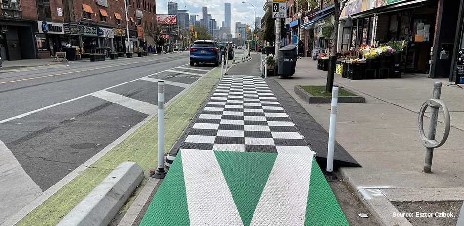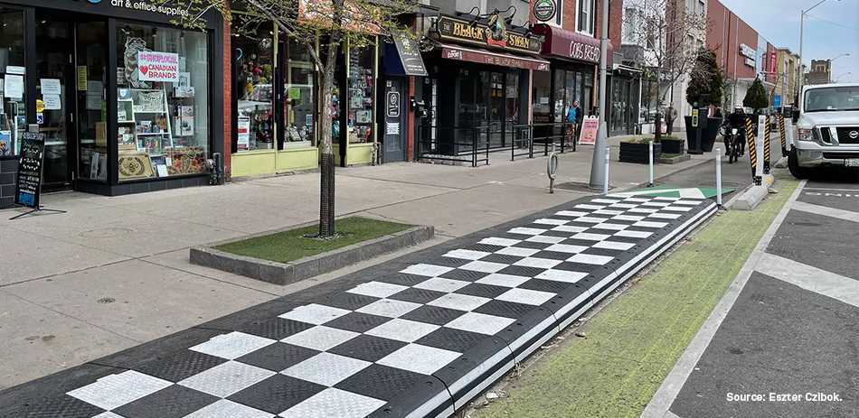 ZICLA Carga y descarga Plataforma para carga y descarga en la Avenida Danforth (Toronto). 1La solución adoptada por la ciudad de Toronto y Broadview Danforth BIA ha consistido en la instalación de una plataforma del sistema Vectorial® para crear una zona de carga y descarga segura tanto para los repartidores de mercaderías como para los ciclistas.